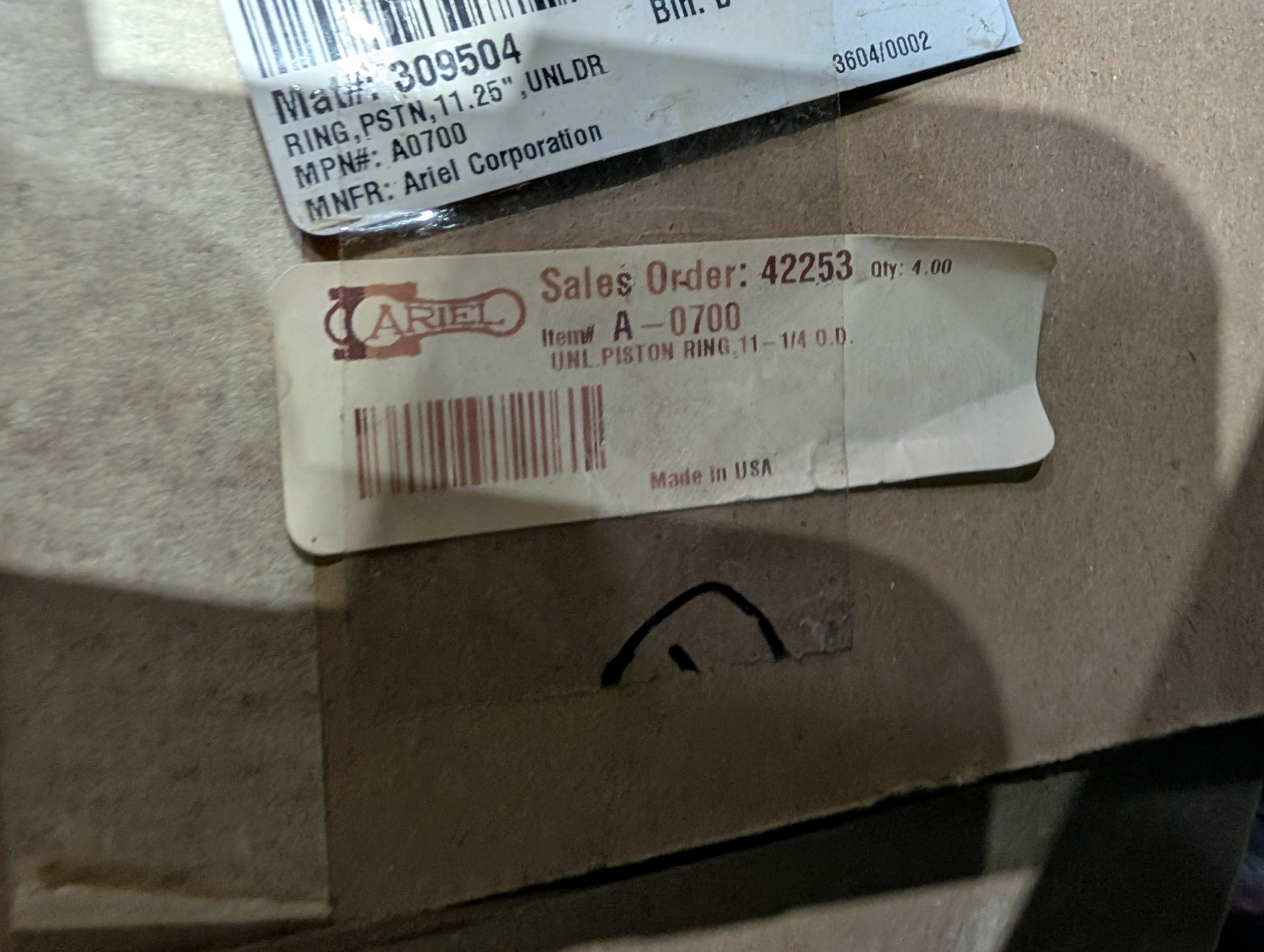 Ariel Piston Ring - UNL, 11.250 OD - A0700 - New