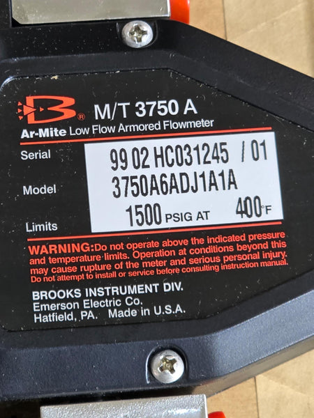 BROOKS Ar-Mite Low Flow Armored Flowmeter M/T 3750 A , MODEL: 3750A6ADJ1A1A, LIMITS:1500PSIG @ 400F