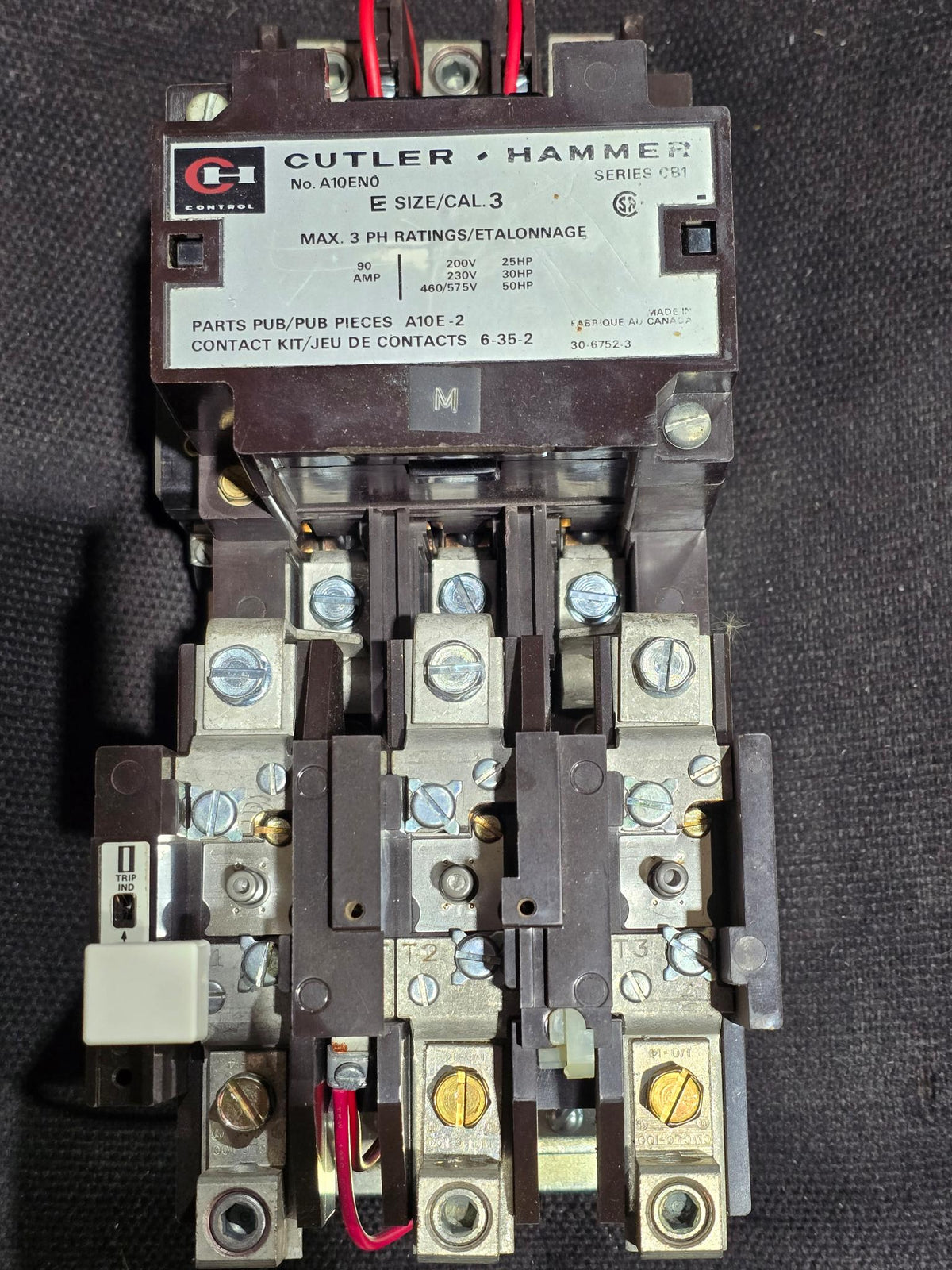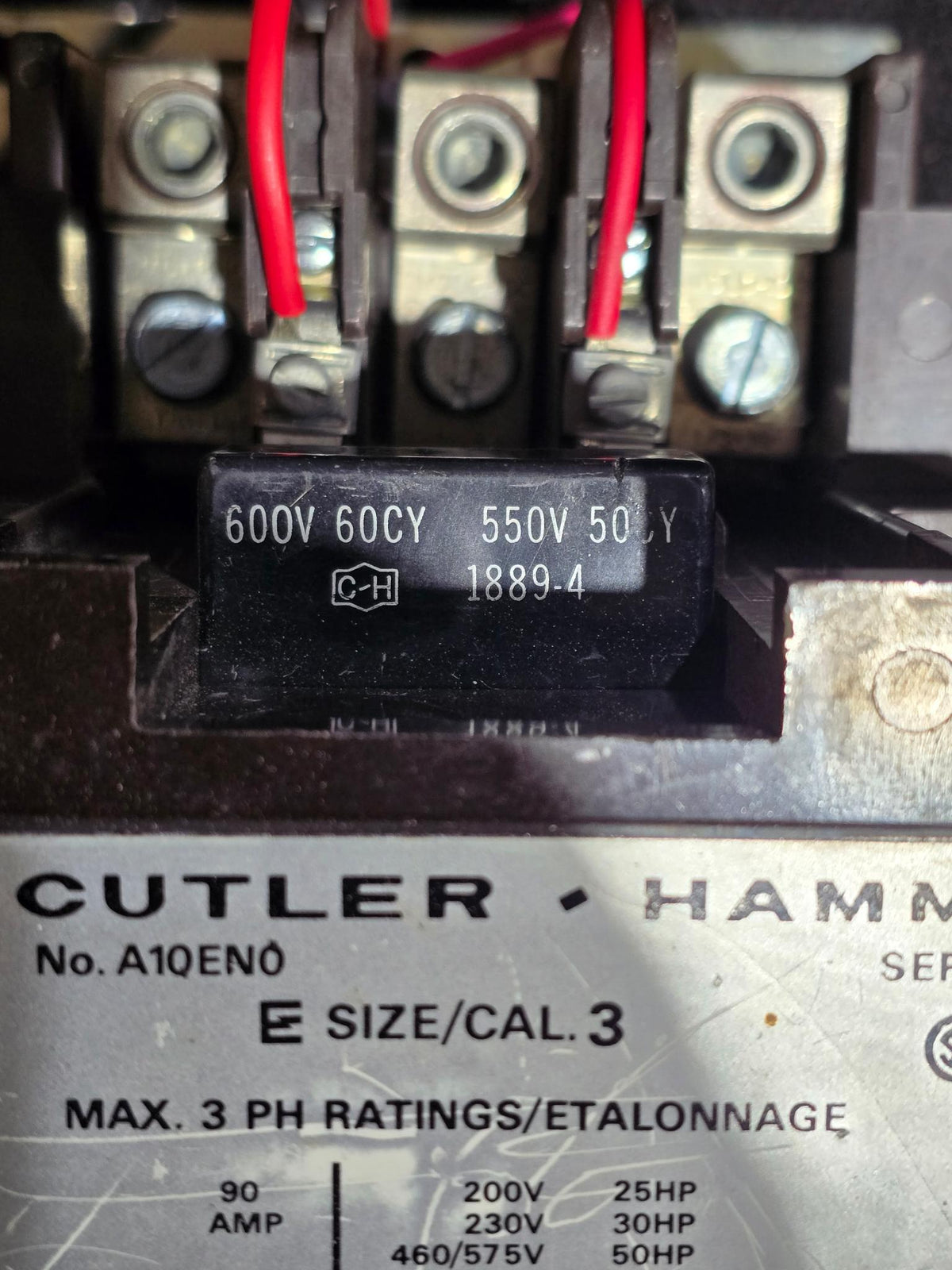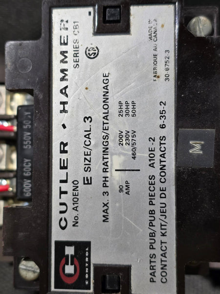CUTLER HAMMER A10EN0 MOTOR STARTER 90A SERIES CB1 NEMA SIZE 3 600V COIL