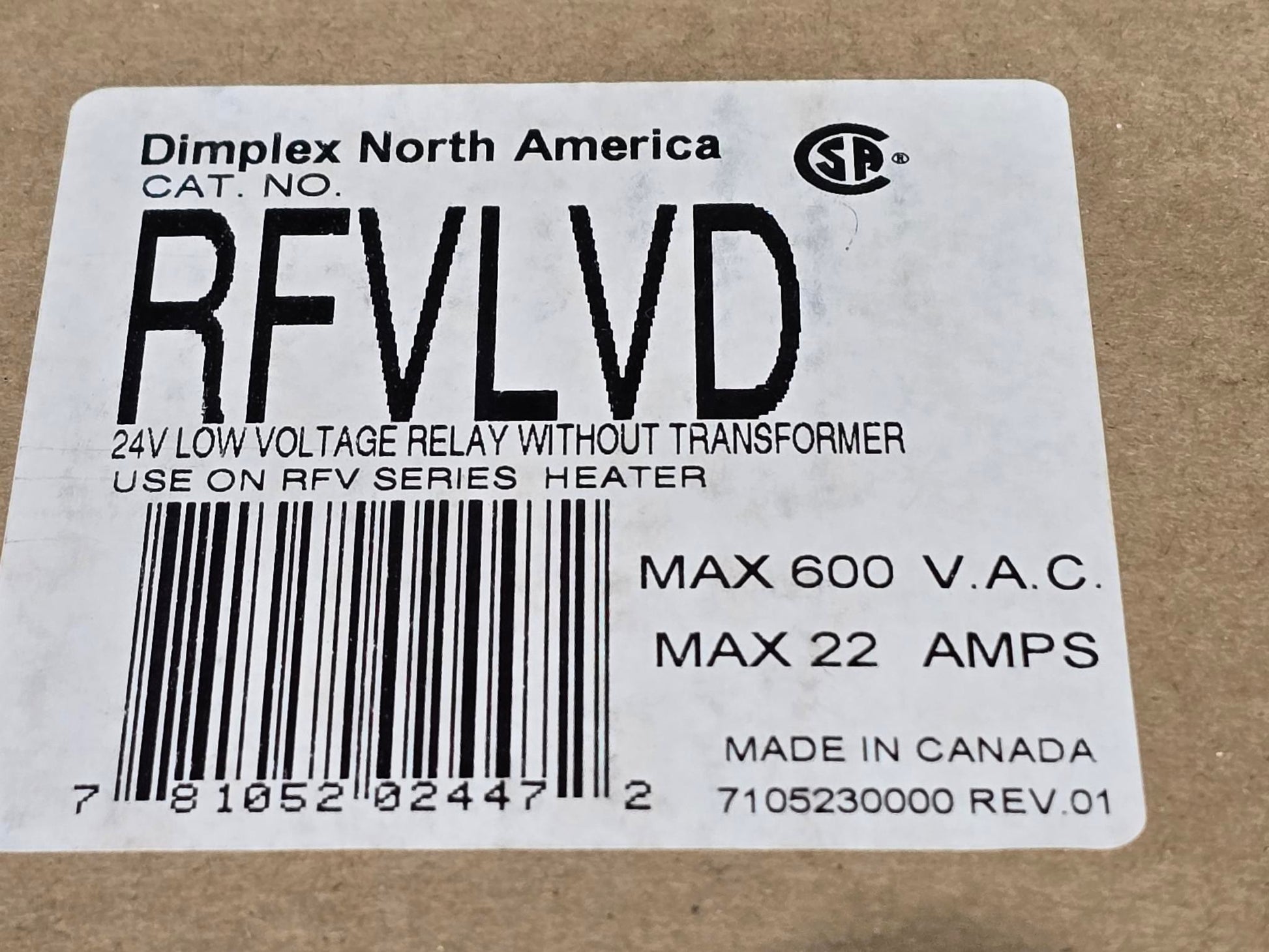 DIMPLEX NORTH AMERICA RFLVD LOW VOLTAGE RELAY WITHOUT TRANSFORMER