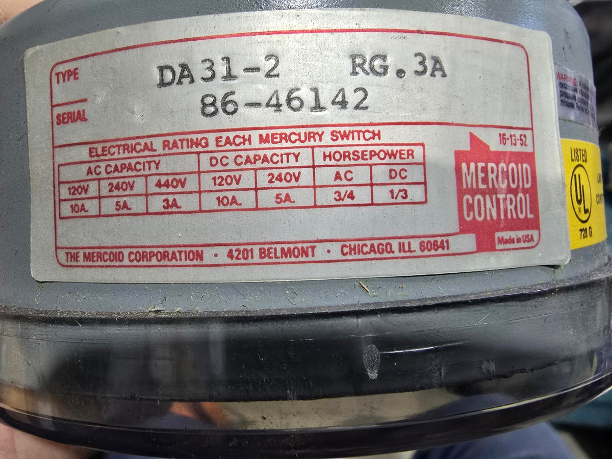 DWYER MERCOID CONTROL DA-31-2-RG.3A PRESSURE SWITCH
