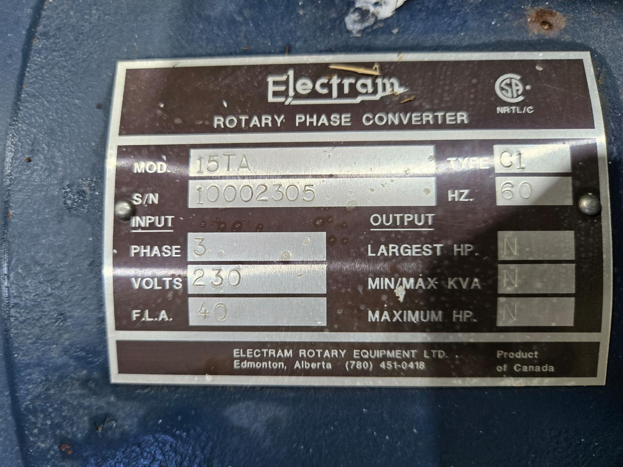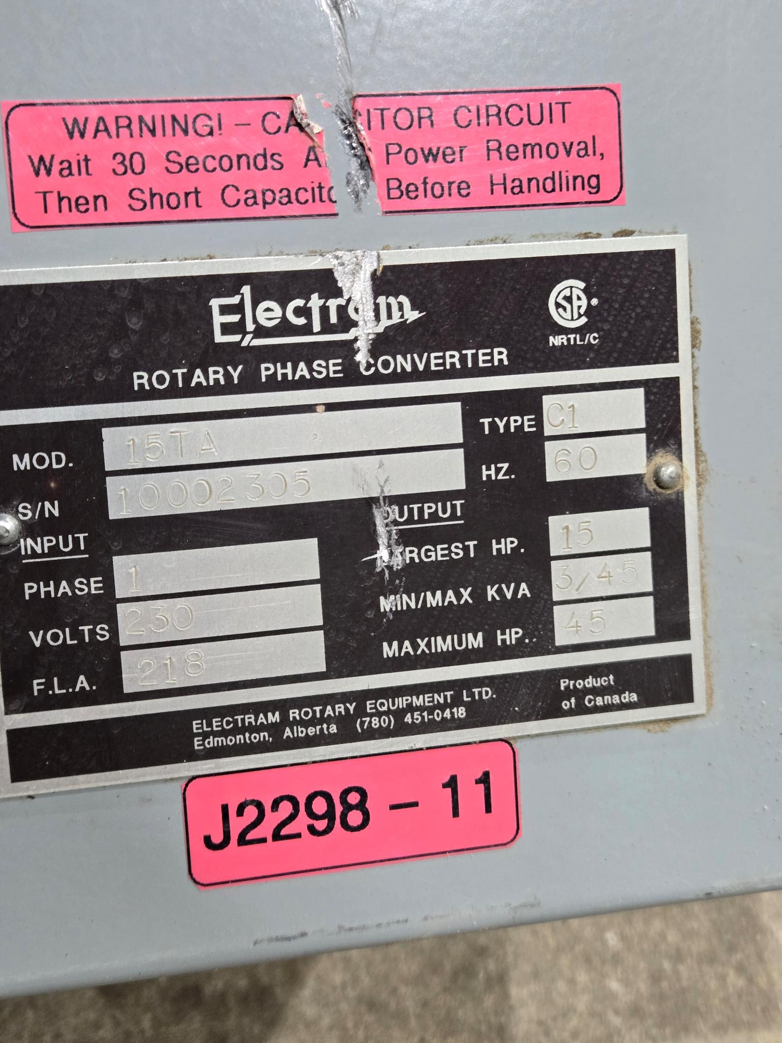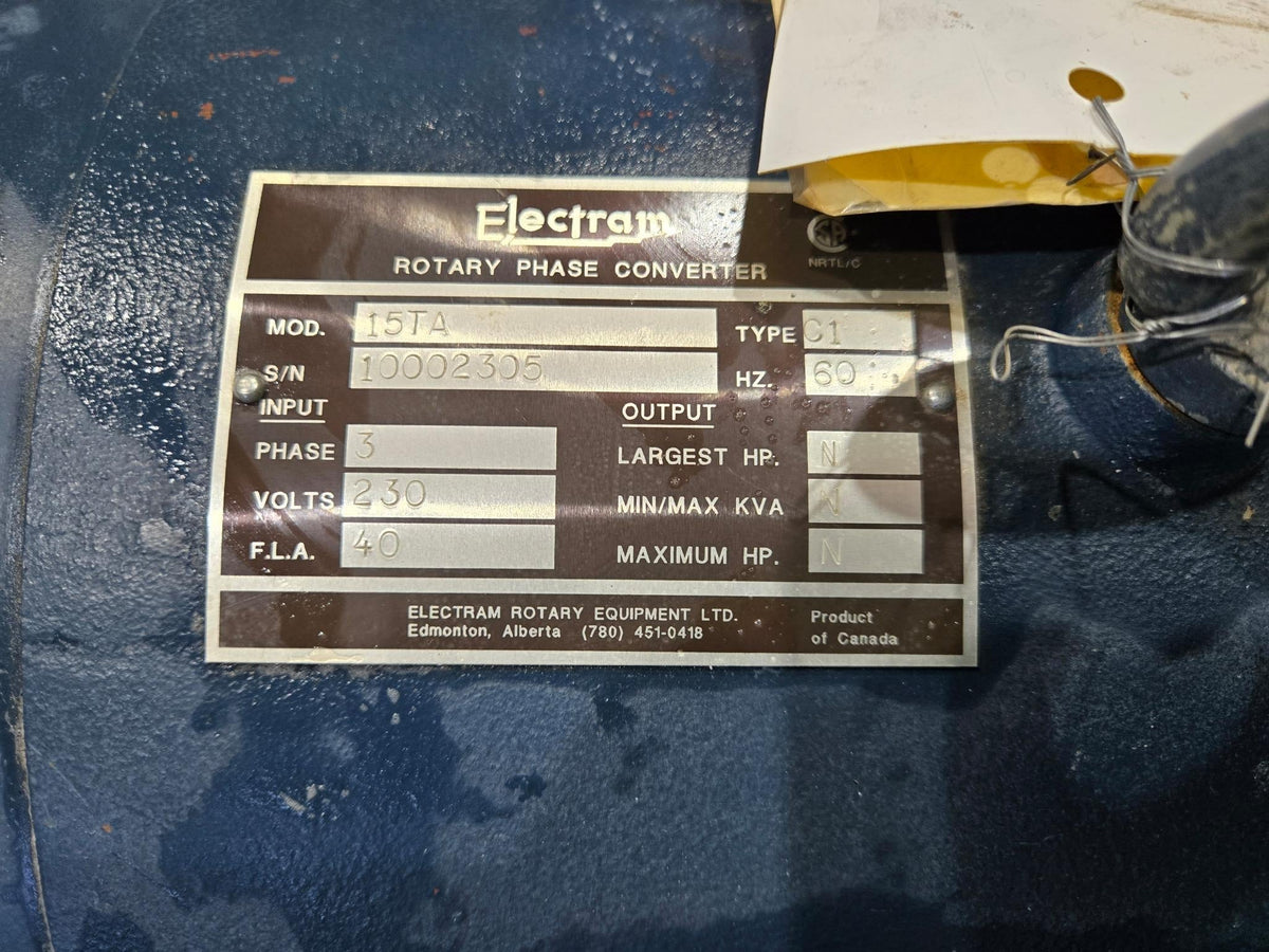 Electram Rotary Phase Converter - 15TA - 3 PH, 230V, 40 A