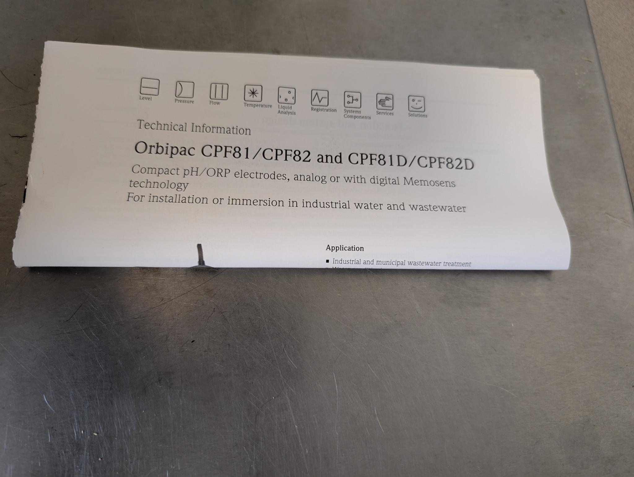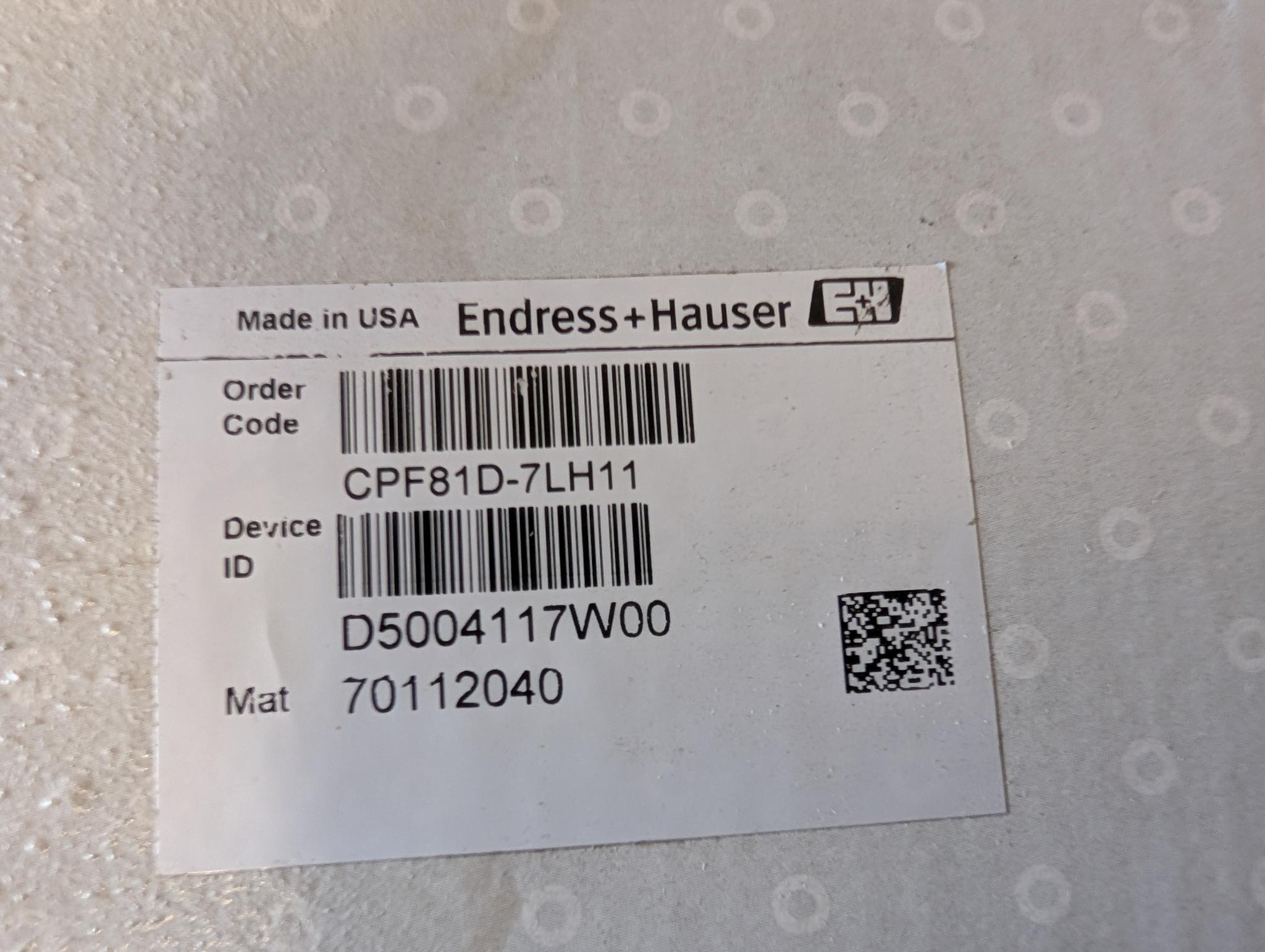 Endress + Hauser Orbipac PH Meter Probe CPF81D-7LH11