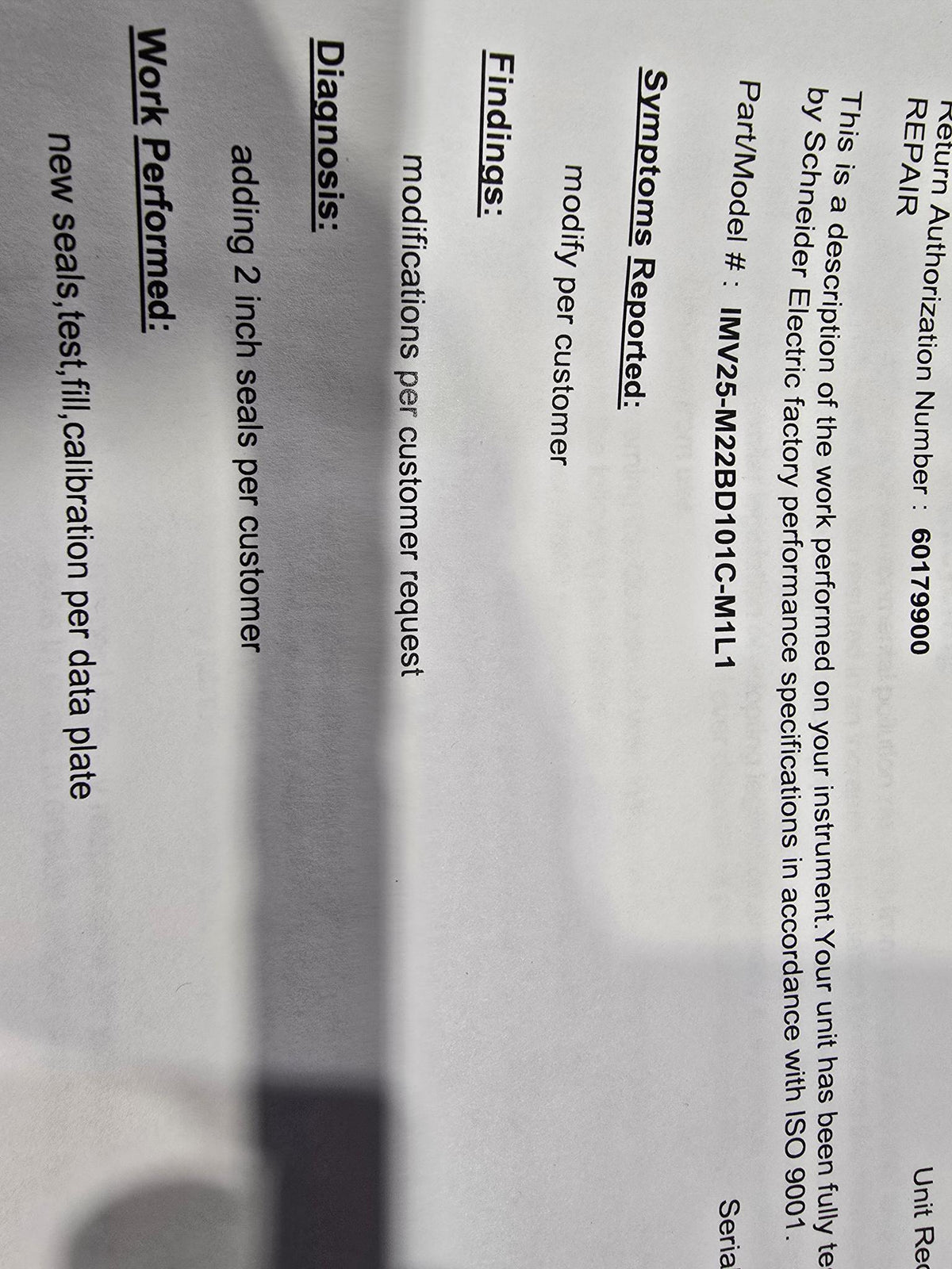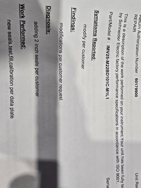 Condition: NEW SENT BACK TO REPLACE SEALS WITH 2" SEALS AT SCHNEIDER