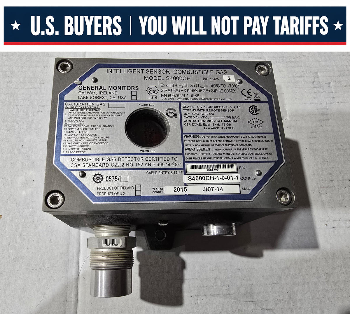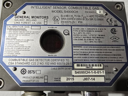 General Monitors Combustible Gas Intelligent Sensor S4000CH P/N 32425-2 (USED)