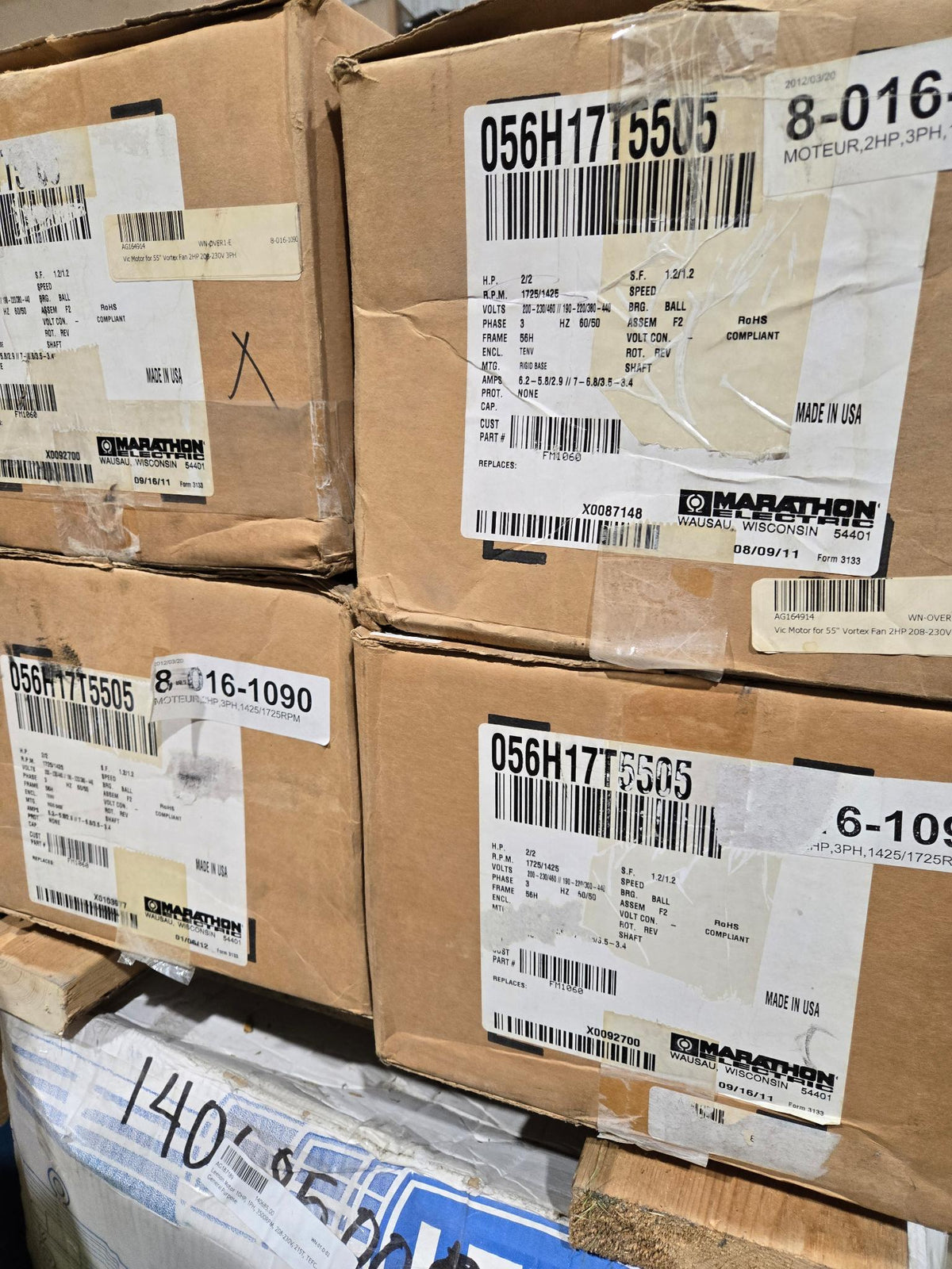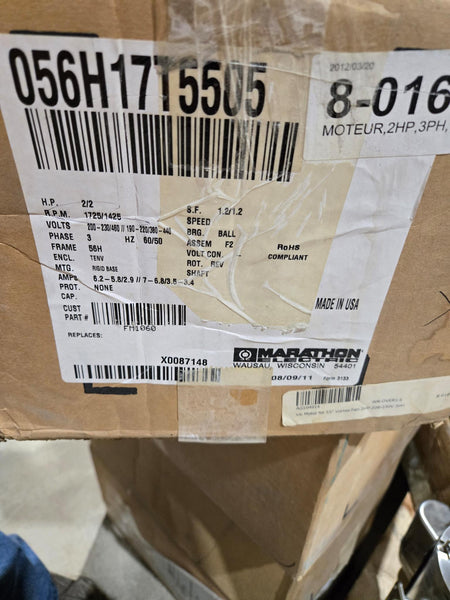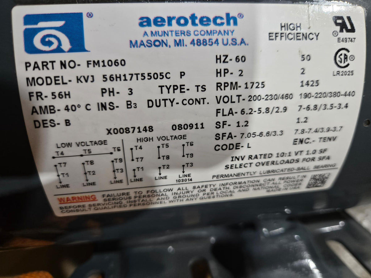 Marathon / Aerotech Electric Motor - FM1060- 2 Hp - 1725 RPM - 200-230/460V - 3 Phase - FR 56H - Hz 60