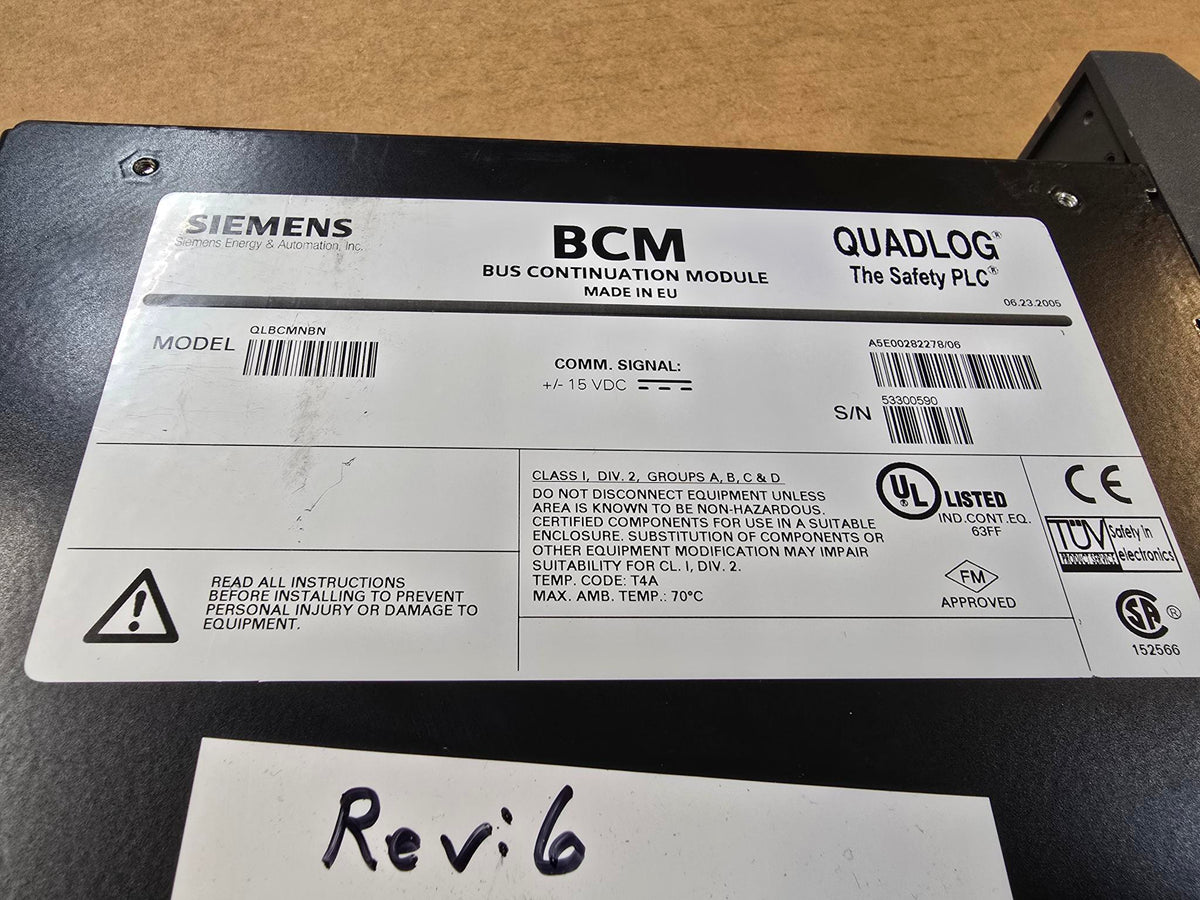 MOORE QLBCMNBN QUADLOG, REV: 6, BCM BUS CONTINUATION MODULE, (Used)
