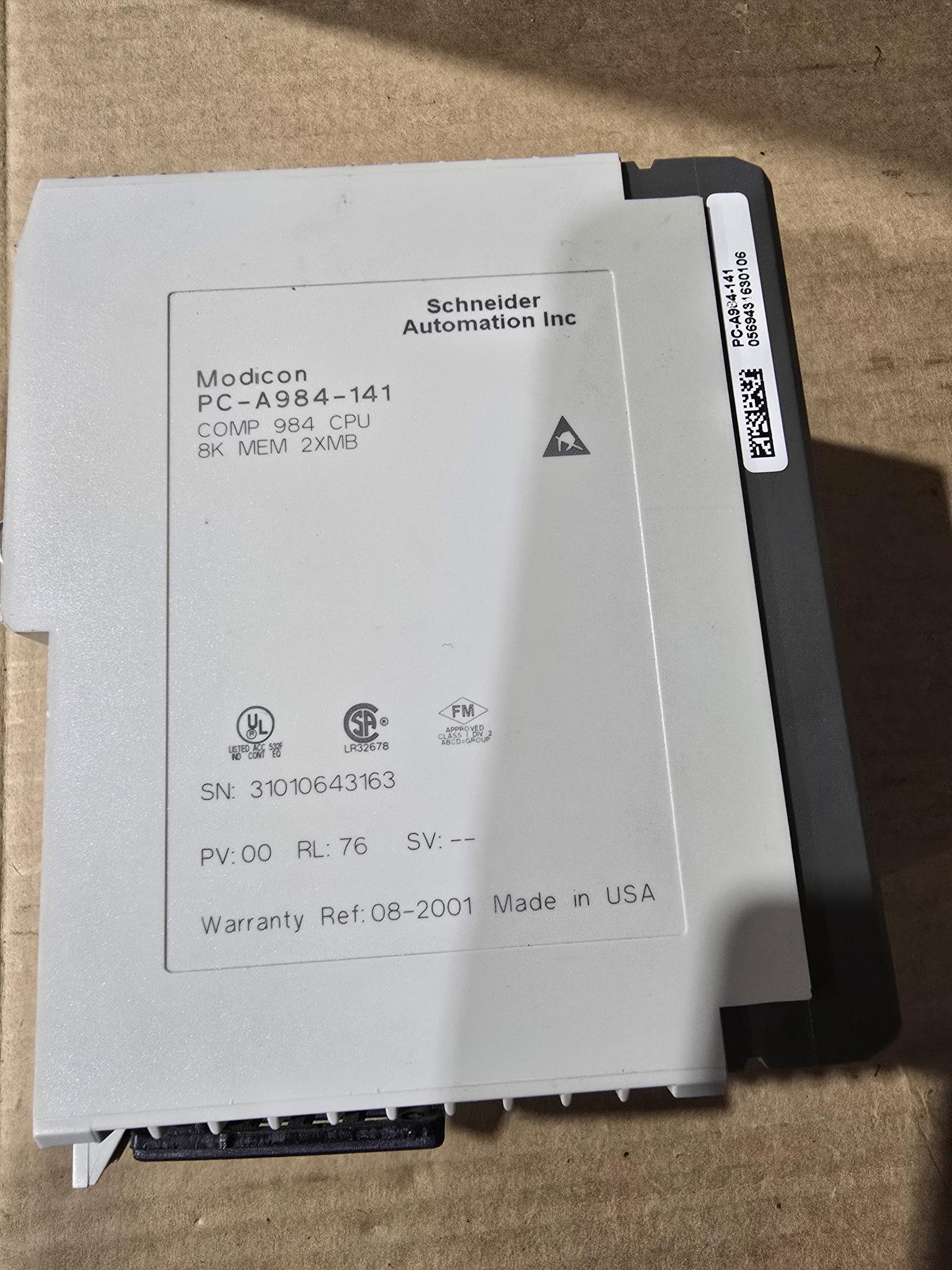 SCHNEIDER ELECTRIC MODICON PC-A984-141 CPU MODULE 8K MEMORY 2XMB (USED)