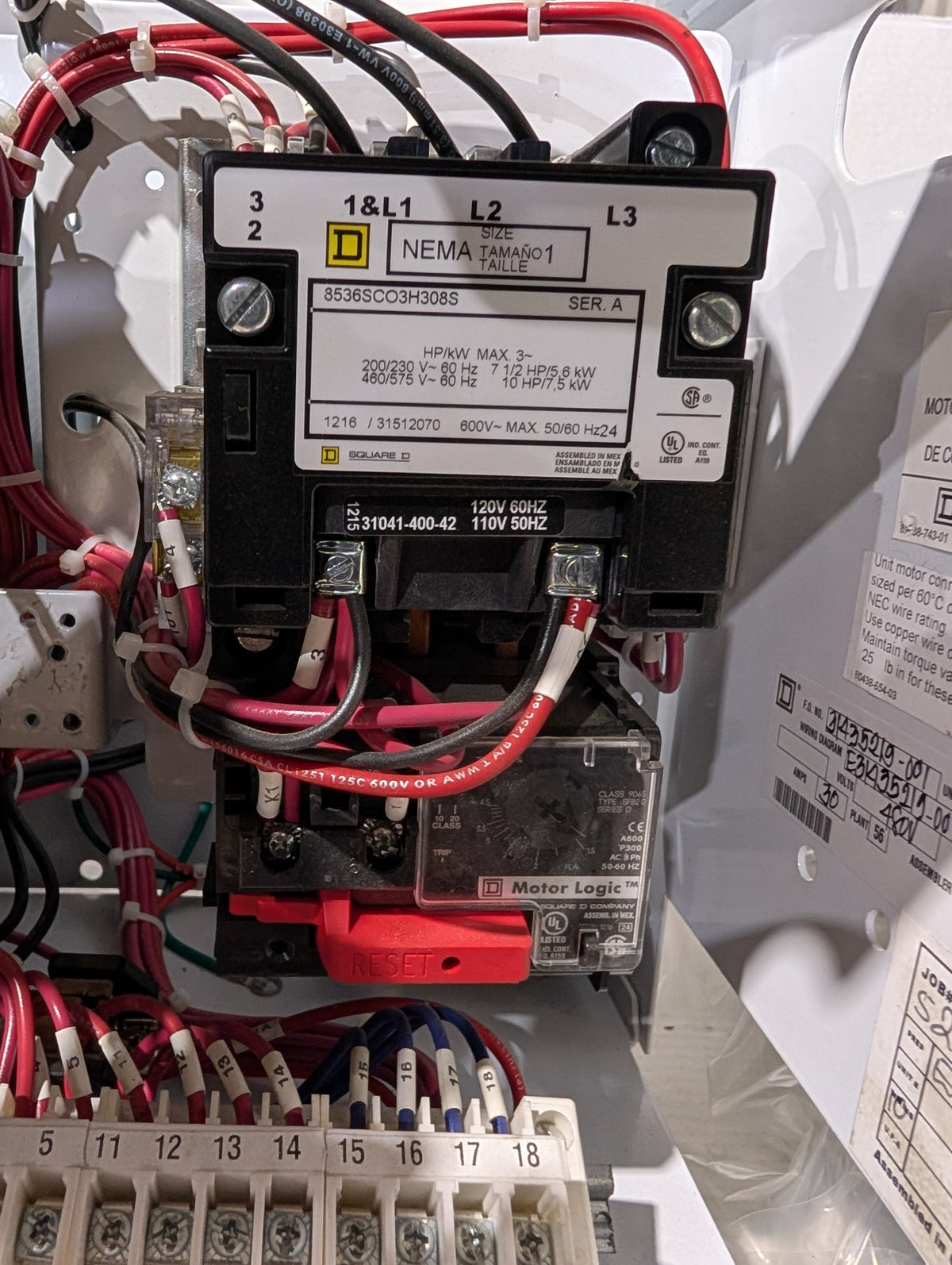 Motor Contactor rating: 7.5 HP