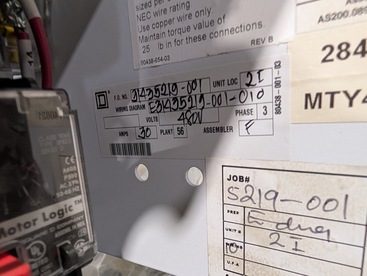Square D Model 6 MCC Size 1 Bucket with PowerPact Breaker - 30 AMP - 480 V - Motor Starter 7.5 HP