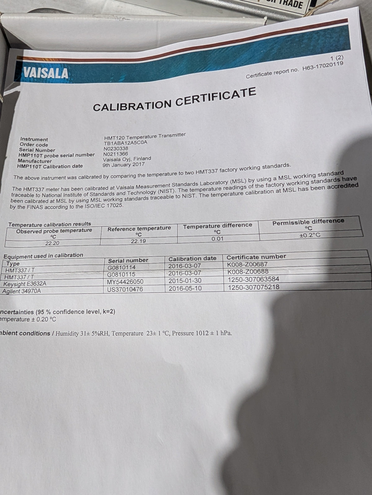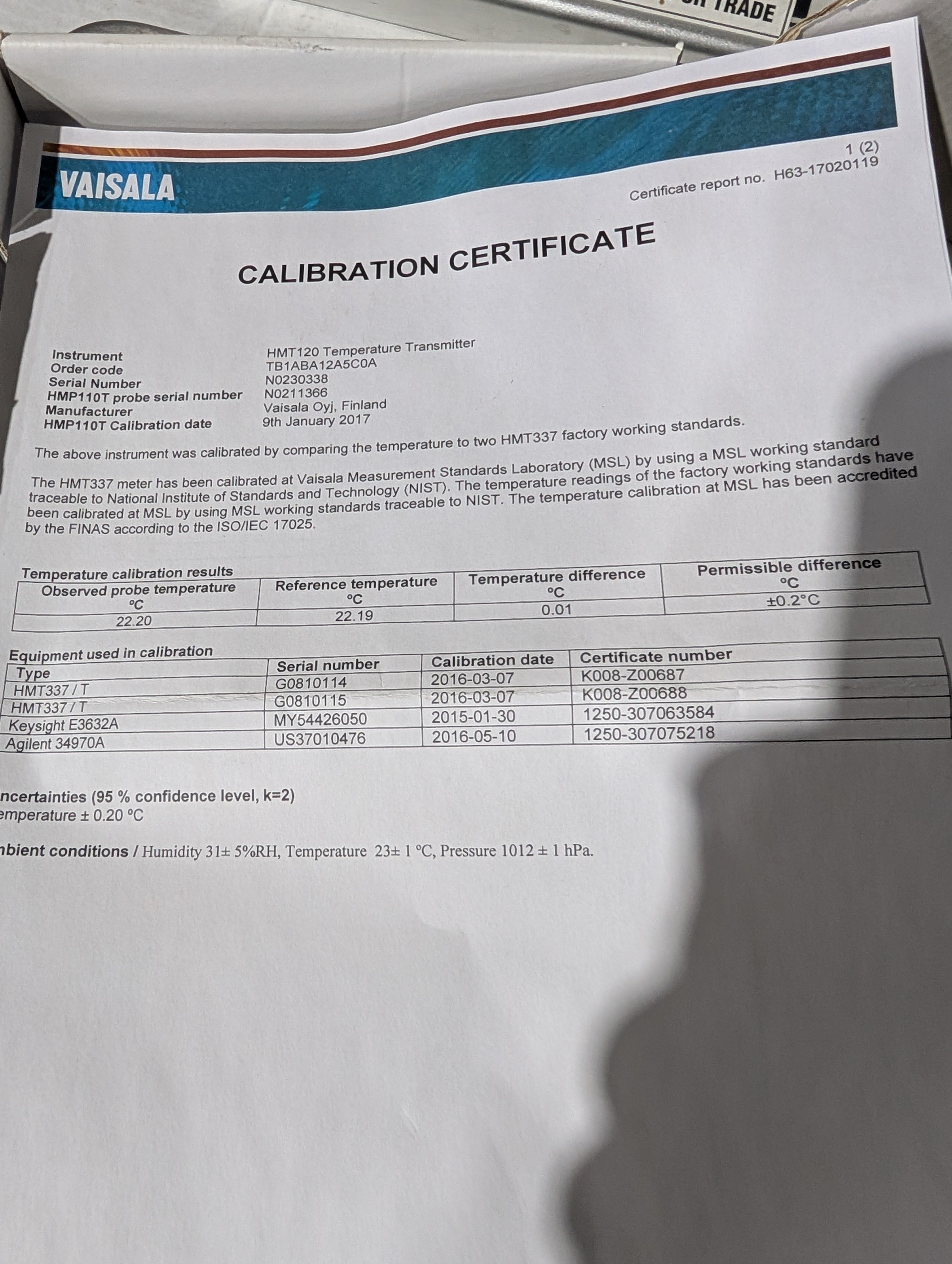 VAISALA HMT120 Brand New Dew Temperature and Humidity Transmitter