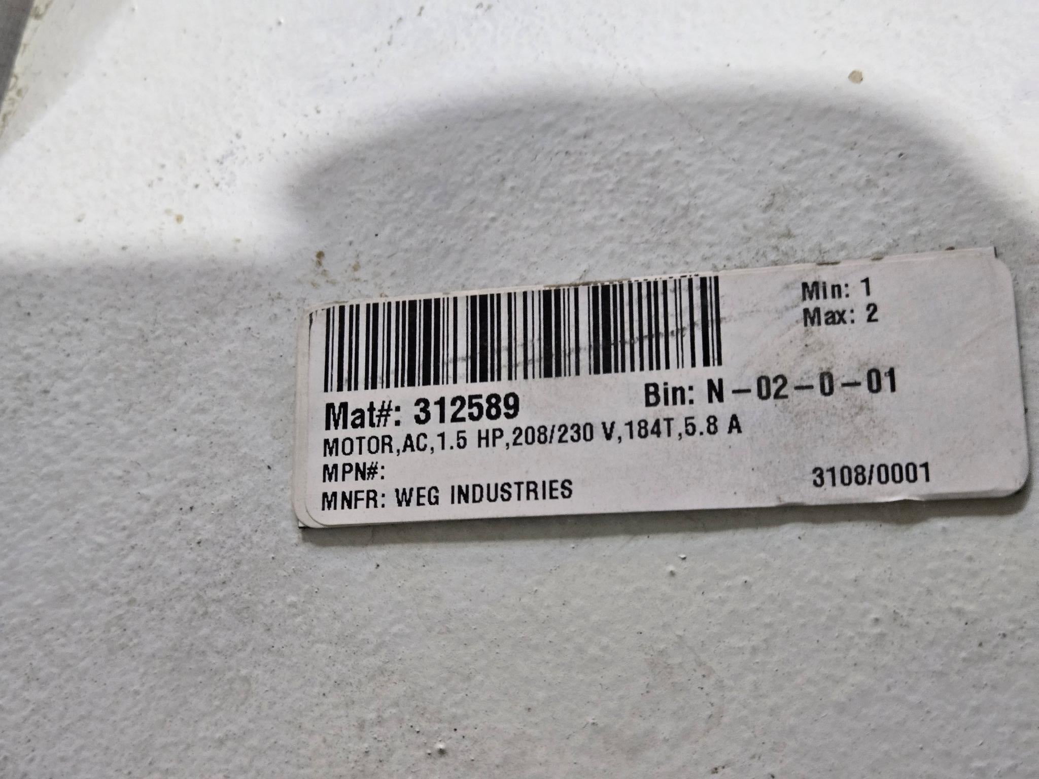 WEG Electric EX Motor 1.5 HP - 208-230/460V- 3PH - 1160 RPM - FR 184T - TEFC EX1