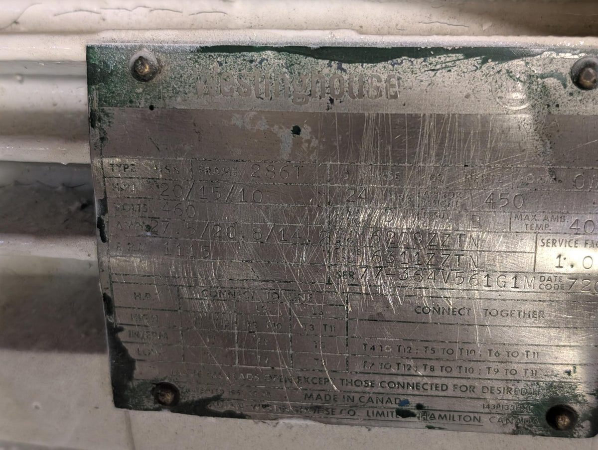 20 HP Westinghouse Electric Multi HP Motor , 20-15-10 HP, 286T, 3 Phase, 460/230V, 1115 RPM